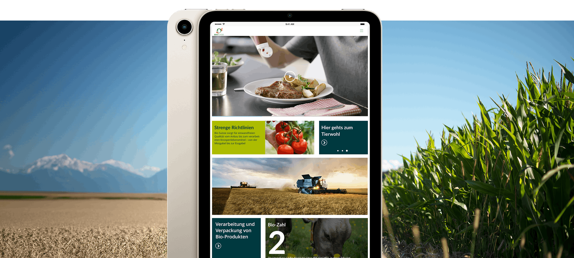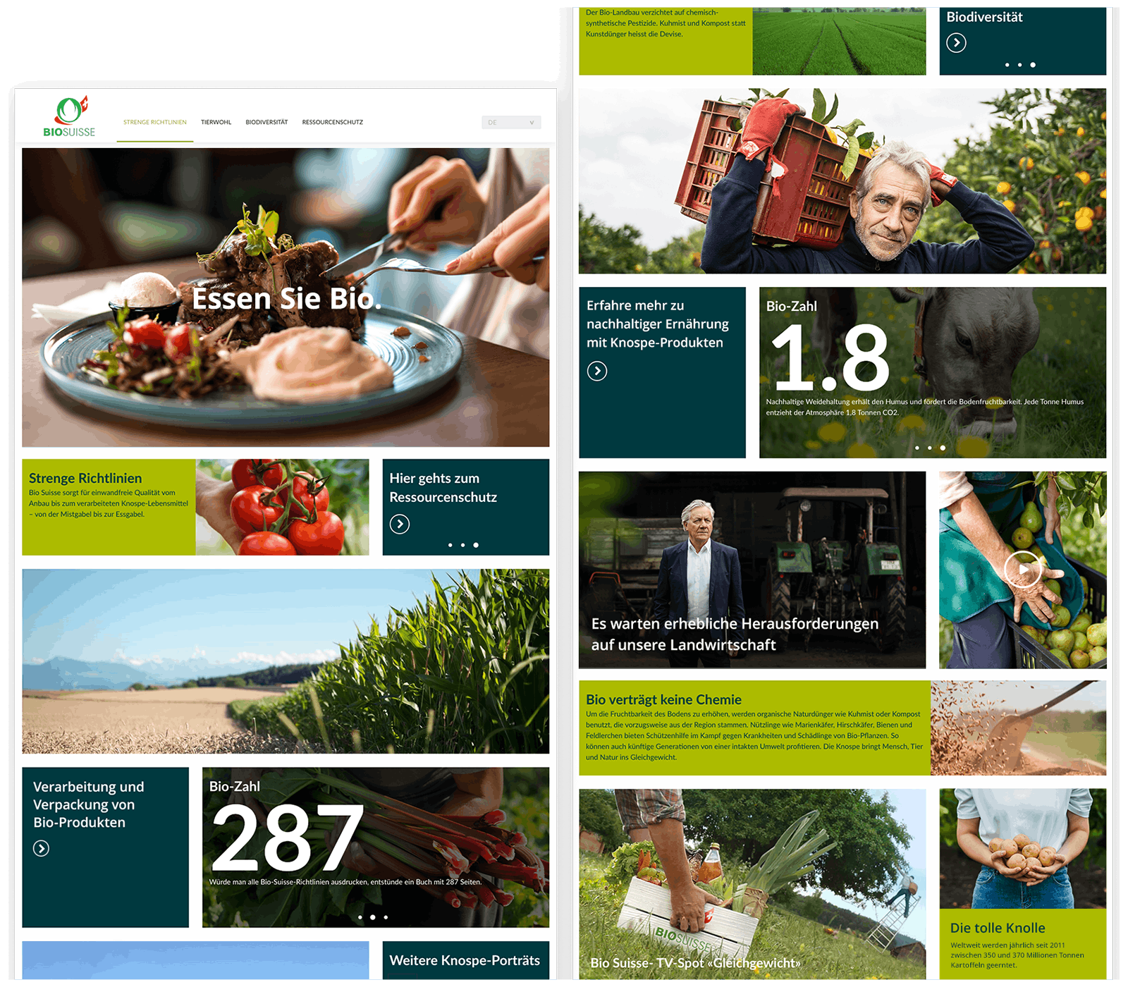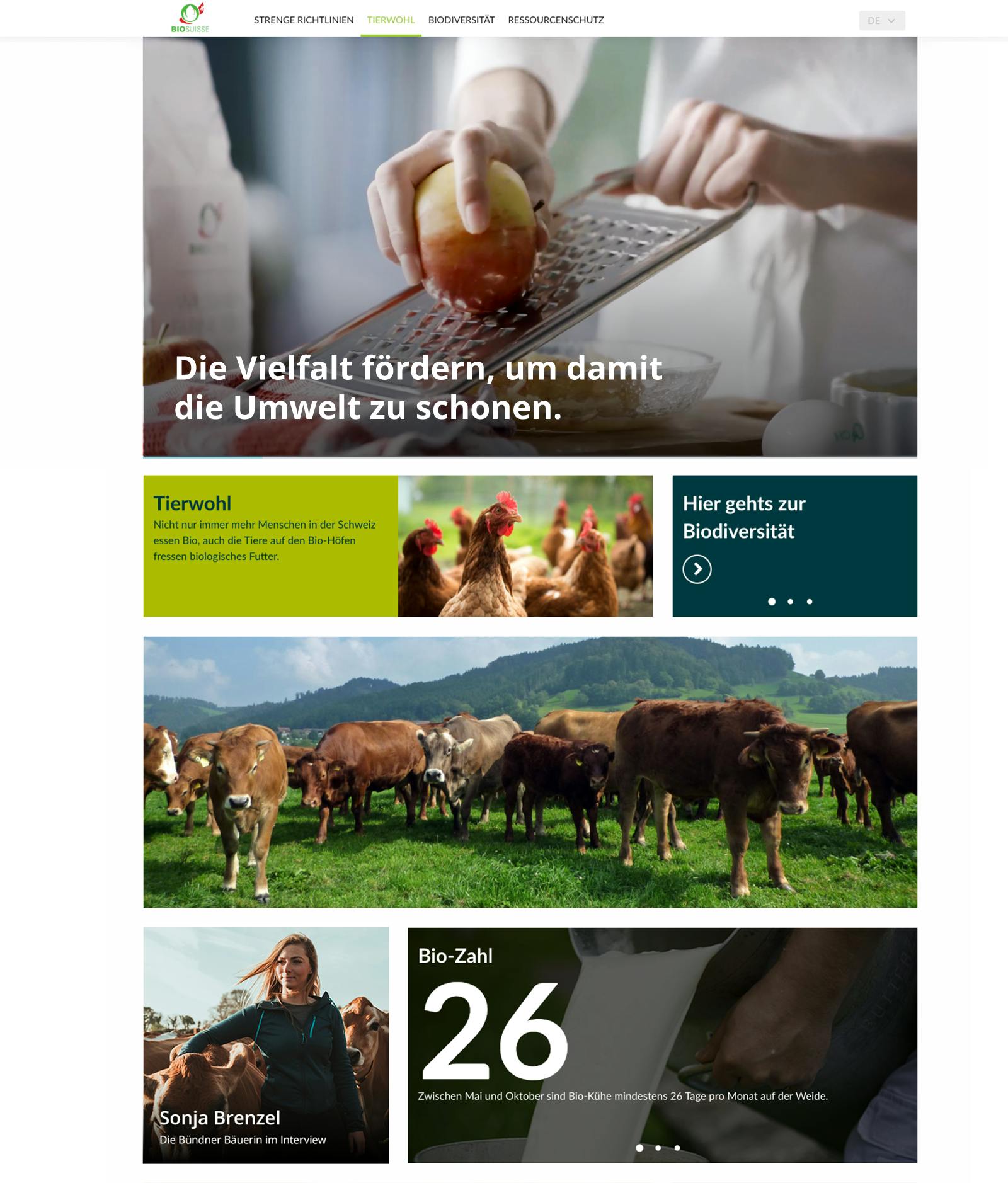 The website provides information on the background of organic farming and contains interviews with local farmers and important facts about the production and quality characteristics of many products which are provided in a interactive and playful way. In addition, information is provided about Bio Suisse's commitment and understanding of sustainability.